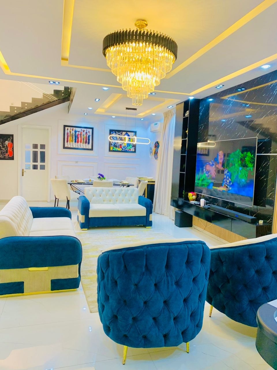 Amplasate în uimitoarea Royal Pine Estate, Lekki. Locuințele noastre de lux cu 4 dormitoare nu sunt doar un loc de cazare, ci o experiență. Imaginează-ți acest lucru: un living spațios unde te poți relaxa, un dormitor matrimonial cu dressing și camere care sunt toate dotate cu baie proprie. Avem Wi-Fi și televizoare inteligente nelimitate în fiecare cameră. Bucură-te de sala noastră de gimnastică, snooker și facilități de tenis de masă! Iar când este timpul să gătești, bucătăria noastră complet echipată are tot ce ai nevoie - gândește-te la mașina de spălat și chiar un PS5 pentru divertisment!