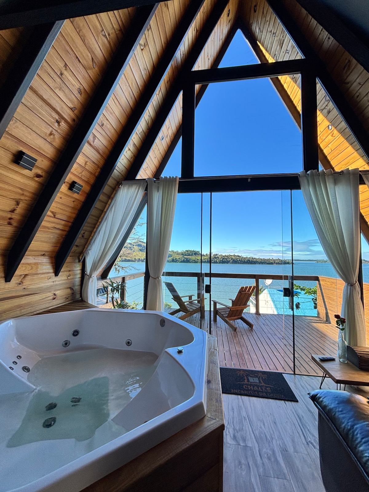 Bine ai venit la Chalet das Laranjeiras! Un refugiu exclusivist cu acces la lagună, perfect pentru relaxare și conectarea cu natura. Bucură-te de piscina infinită încălzită împreună cu familia sau prietenii. Cabana oferă un living complet și bucătărie, balcon și dormitor cu vedere la lagună, paturi matrimoniale și cadă. Mediu automatizat cu Alexa, oferă confort, modernitate și o experiență de neuitat.