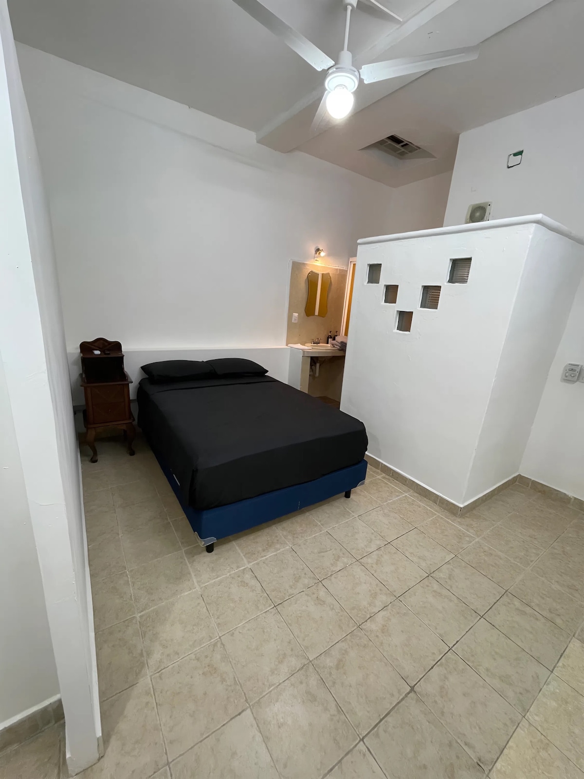 Îți oferim un spațiu perfect pentru 2 persoane cu pat matrimonial, echipat cu toate serviciile, cum ar fi: Smart TV cu Netflix, Wi-Fi, cablu, aer condiționat, apă caldă, chicinetă cu minibar, grătar electric, cuptor cu microunde, blender, cafetieră, ustensile de bucătărie, vase, tacâmuri etc. 1 km de plajă, situată în centrul istoric, la 3 străzi de Iglesia del Carmen, la 3 străzi de Malecón, la 2 km de Playa Norte și Malecón Costero, lângă bănci și restaurante.