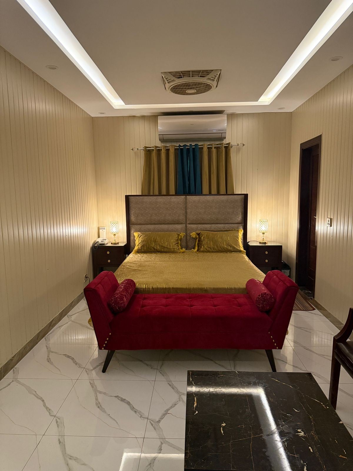 Enjoy a stylish experience at this centrally-located place. ❄️ AC - 2× (extra charges for second AC) 🖥️ TV (Android) 🍿Free Netflix (Optional) 📶 Fast Wi-fi 🧑🍳 Kitchen - Microwave oven, cutlery, Sauce pan, Fry pan, Electric kettle. 🚿 Geyser 🚗 Free Parking 🛗 Lift 🔐 Secure environment 📱 24/7 help 🛕 Basil Bistro Restaurant 🛕 Yasir broast Restaurant 🛕 YI FANG Chinese & Thai Restaurant 🛕 LalQila Restraunt 🛕 Mojoz Restraunt 🛕 Novu Restaurant 🛕 Muhammadi Nihari 🛕 Ghani Shinwari