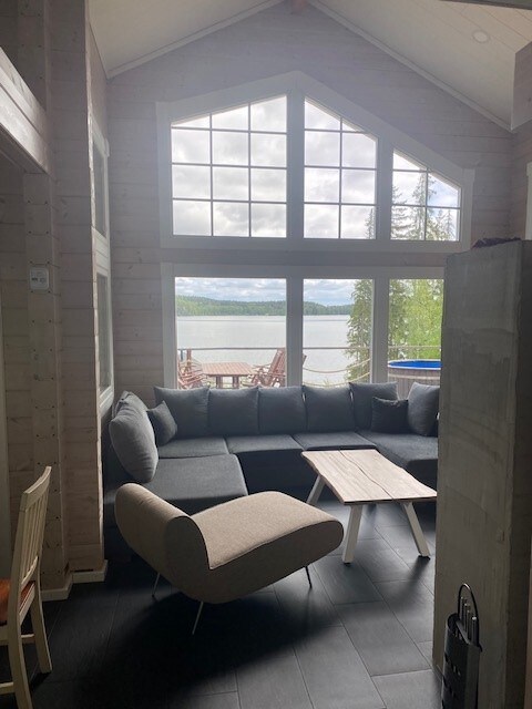 Când dorești pace și liniște cu priveliști minunate, acesta este locul tău! Cabană unică de câțiva ani lângă lacul Vesijärvi. Există, de asemenea, o saună pe malul lacului cu priveliști minunate. Poziția este la numai șase kilometri de traseul de ciclism Ironman WC și la 20 km de centrul orașului Lahti. Cabana include două dormitoare cu paturi matrimoniale și mansardă de dormit la etaj, cu canapea extensibilă și saltele. De asemenea, poți dormi la sauna de pe malul lacului.