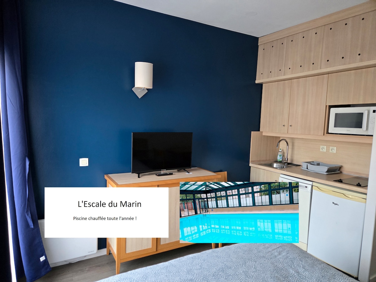 Duplex 36 m2 haut standing rénové en 2023, avec ascenseur, piscine privée, wifi et parking. Inclus local vélos sécurisé + 2 vélos adultes. À 100m plage, marché (50m) et centre (100m). Equipé: lave-vaisselle, plaques, four multi, frigo, machine à café, grille-pain, bouilloire, TV. Chambre lits jumeaux 80cm; salon canapé-lit 160cm. Lit bébé, rehausseur, parasol. Un appart identique est aussi disponible dans la même résidence pour ceux qui recherchent deux locations proches mais indépendantes.