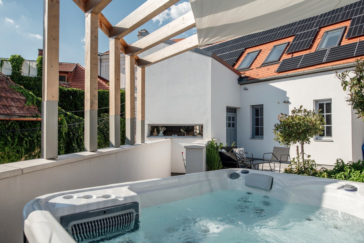 Veszprém történelmi városközpontjában, mindentől karnyújtásnyira helyezkedik el a négy csillagos Loftlakásom****, mely három különálló apartmannal várja Vendégeit. Az 1. apartman elbűvölően stílusos, indusztriális jellegű berendezéssel, egy hálószobával, saját konyhával és fürdőszobával várja Vendégeit. Párok számára ideális. A kertben jacuzzi, kerti bútorok és tűzrakóhely található, melyeket a Loftlakásom**** vendégei korlátozás nélkül használhatnak. Éttermek, kávézók 50méteren belül találhatók