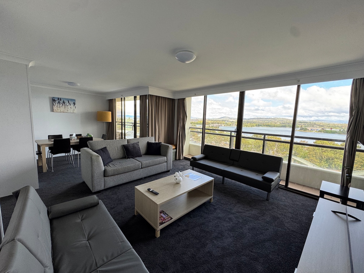 Situat în cea mai înaltă clădire din Canberra, acest apartament oferă vedere uluitoare la lac, 2 dormitoare private și 2 locuri de parcare. Dormitorul principal are vedere panoramică la lac, în timp ce al doilea are acces la balcon. De la balcon, admiră priveliștile montane, apusurile de soare uimitoare și o vedere liniștită la piscină. Grădina Sky de la etajul 23 cu grătar. Etajul 5: piscină, saună și SALĂ DE GIMNASTICĂ. La câțiva pași de restaurantele și parcul de pe malul lacului. Autobuze directe către oraș, ANU, Stadionul GIO și AIS. Acces ușor la UC și Westfield.