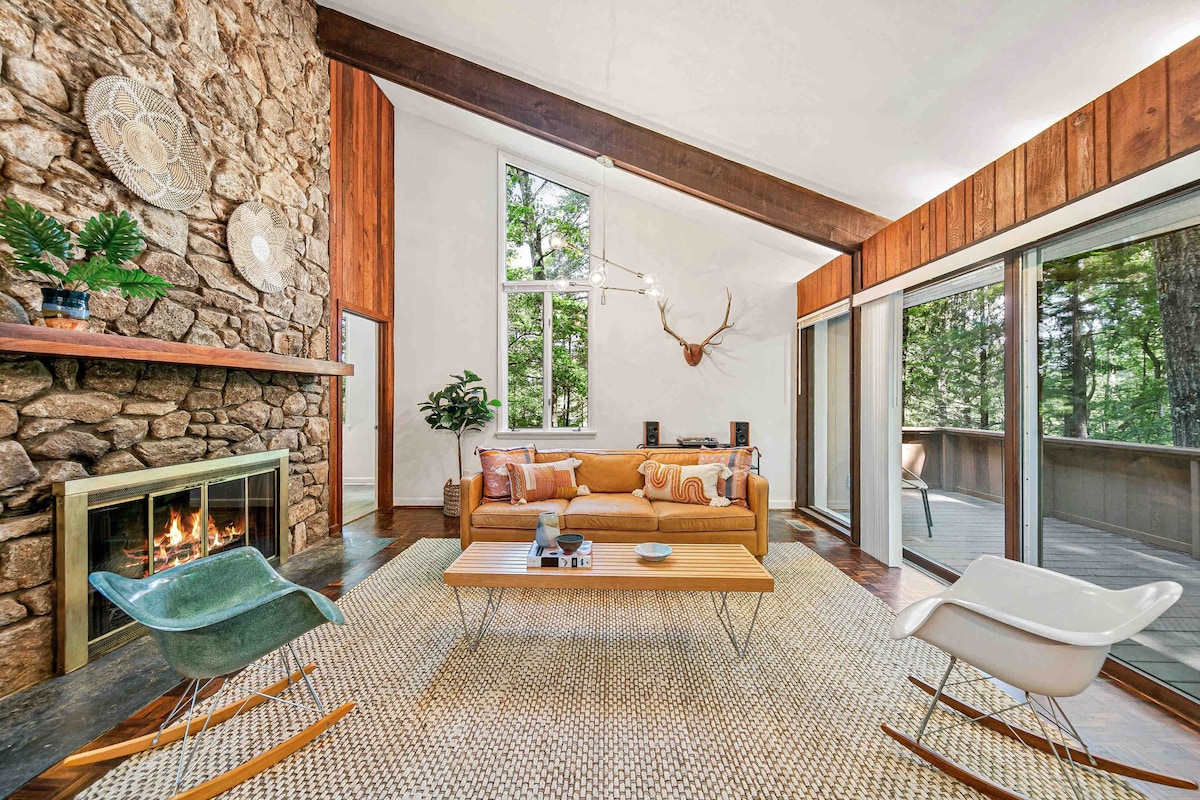 Cabană Asheville cu șemineu epic, un acru, modern
