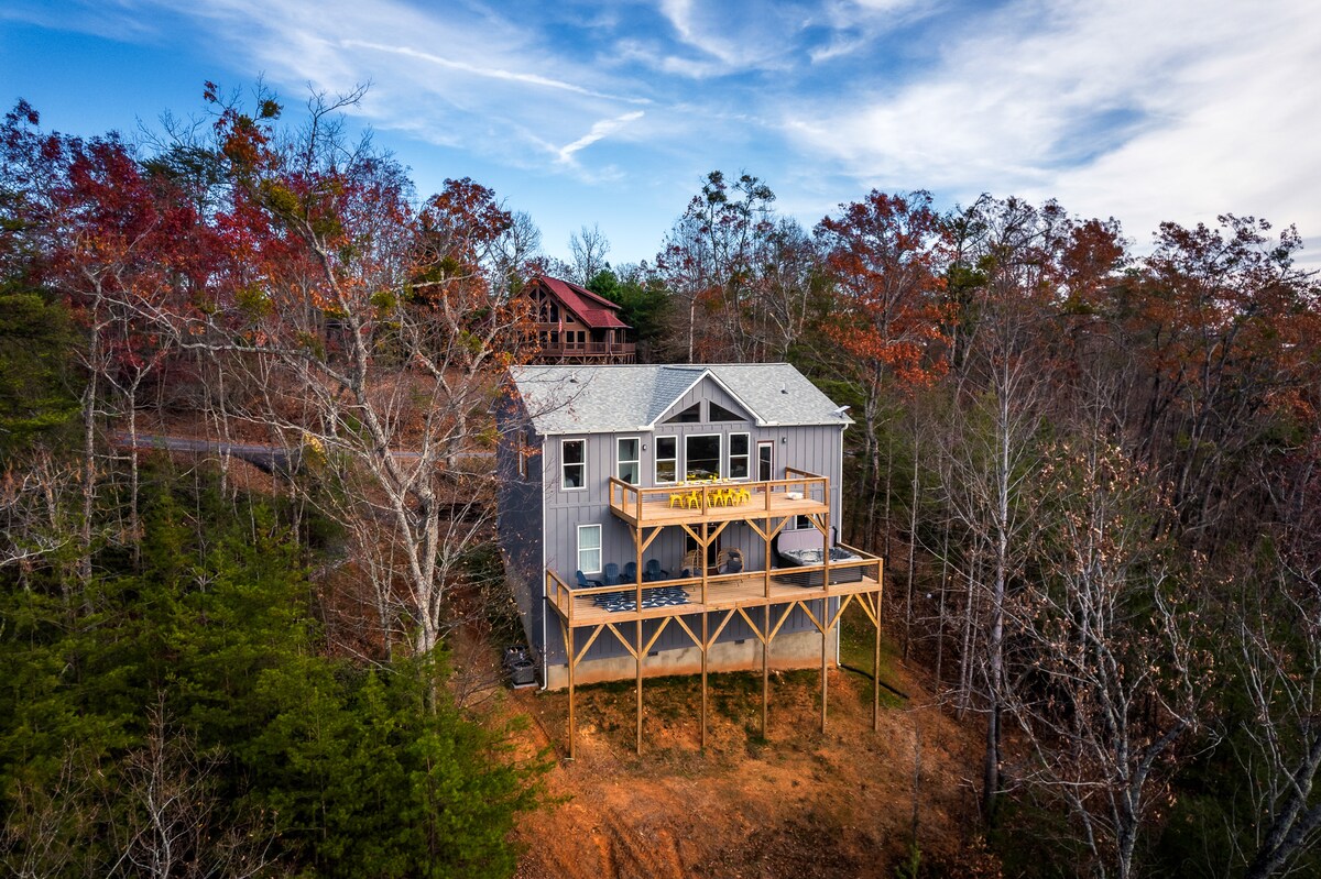 BNB Breeze prezintă: Ridgeline! Dotările moderne se îmbină perfect cu natura în acest UIMITOR 4 dormitoare (doarme 10), proprietate cu 2 băi aici, în munții Carolina. Concepută ca o destinație pentru crearea de amintiri, Ridgeline are toate dotările de top amplasate la înălțime pe o parte montană, iar combinația este o experiență distractivă, plină de pace! Bazin ⭐ încălzit ⭐ Cadă cu hidromasaj ⭐ 6 Hole Putt course Groapă ⭐ de foc cu gaz ⭐ Bucătărie exterioară ⭐ Luxe Design ⭐ Șemineu electric interior ⭐ Masă de biliard ⭐ Vedere la munte