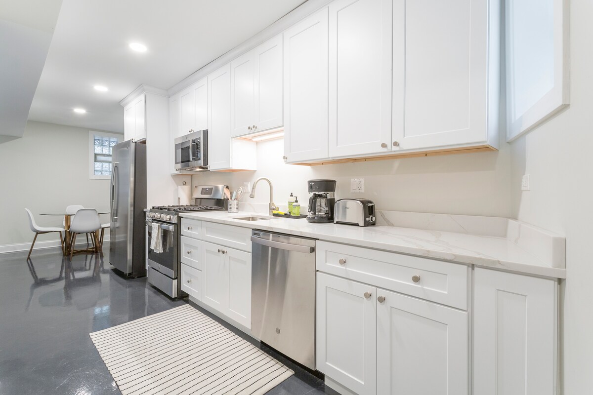 Bine ai venit în acest apartament nou, complet mobilat, în inima parcului East Lincoln... la doar 3 minute de mers pe jos de Grădina Zoologică Lincoln Park! Apartamentul a fost complet renovat, cu finisaje înalte pe tot parcursul. Livingul are un televizor de 50”cu TV pentru vase, internet și o canapea extensibilă cu pat matrimonial! Bucătărie gourmet cu blaturi de granit, cu un blat de înălțime a barului. Bucătărie cu adevărat gourmet! Dormitor cu baie privată în stil european. Televizor montat pe perete în dormitor. În unitatea de spălătorie.