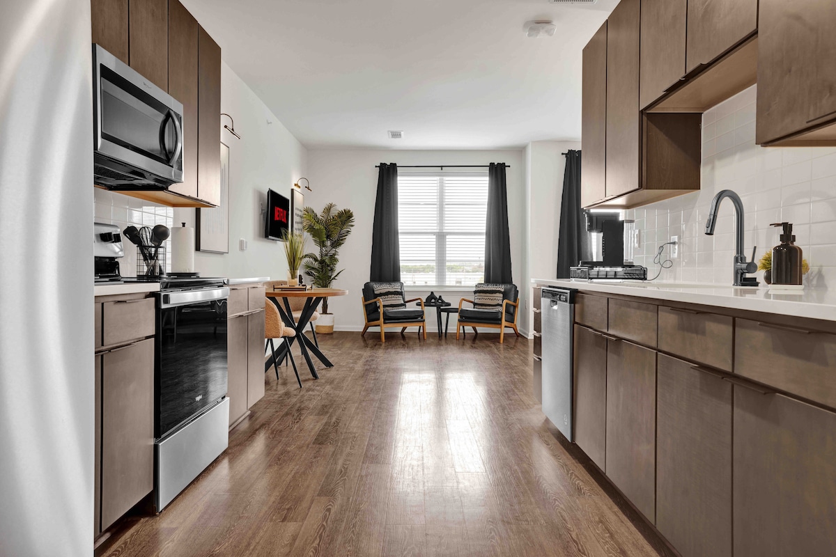 *Check-in independent, inteligent * Parcare gratuită pe stradă *Situat central în CENTRUL ORAȘULUI *Terasă pe acoperiș * Piscină în stil complex la înălțime *Smart TV în dormitor *Wi-Fi gratuit *Bucătărie complet aprovizionată, cu filtru de cafea *Mașină de spălat/uscător automat de rufe în unitate *Mergi pe jos până la Retail, restaurante și baruri * Curățat profesional *8 minute până la aeroport *5 minute până la BJCC/Legacy Arena și stadionul de protecție *5 minute de Universitatea din Alabama (Birmingham)