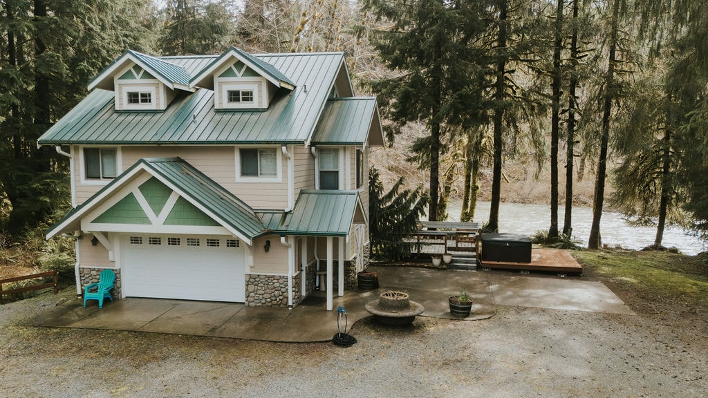 Cabana rustică actualizată de pe malul râului are 300 de metri de fațada râului, curte împrejmuită (cu excepția malului râului). Puntea din spate are o cadă cu hidromasaj, o frumoasă priveliște maiestuoasă a râului. Râul are un flux mareic greu (fără utilizare a râului de acasă). Pistele de sprijin ale râului Hoquiam din Chinook, chum și coho somon, steelhead și păstrăv de mare. La doar câteva mile în amonte de restaurantele, magazinele și magazinele istorice din centrul orașului Hoquiam, la 20 de minute de coastă, la 45 de minute de mers cu mașina de traseele de drumeții din Lacul Quinault, South Shore Trailhead.