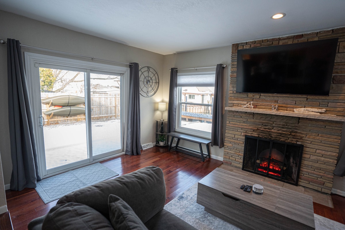 Find your sanctuary at Little River Retreat. Bordering parks, with luxe vibes, a crackling fireplace, and a dreamy hot tub. Enjoy a walk or bike ride through beautiful parks and beaches, including the 10 km+ Ganatchio Trail and Sandpoint Beach (both 5 minutes away). In under 45 min, find yourself in wine country, or for nature lovers, Point Pelee National Park. WFCU Centre 3 min away. Caesars Windsor, tunnel & bridge to USA 10-15 min away. Detroit airport approx 45 min, new battery plant 9 min
