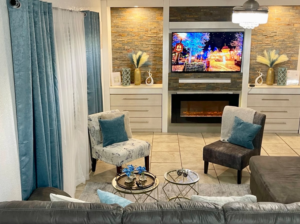 Locuință de lux modernă, nou-nouță, uimitoare, la Encore Resort Reunion. ACCEPTĂ ANIMALE DE COMPANIE și minute pentru toate parcurile tematice. LOCUINȚĂ NOU-NOUȚĂ. Piscină privată și spa / Cameră de jocuri / Cinematograf / Sală de fitness / Fotoliu de masaj / Șemineu / PS5 / Jocuri de societate și multe altele. Bucură-te de ceva extraordinar și rezervă-ți șederea în locuința noastră, unde luxul și divertismentul se îmbină pentru o experiență de vacanță de neuitat. ** Te rugăm să consulți regulile înainte de a face o rezervare. Accesul la parcul acvatic nu este inclus. **
