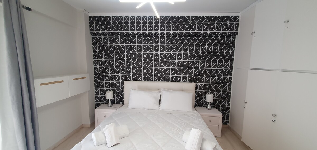 Beautiful, bright, spacious and stylish apartment with a sea view, ideal for making you feel at home. You are a 5-minute walk from the sea, very close to restaurants, cafes and supermarkets. At 100 meters there is a bus stop to the center of Athens or to the airport.