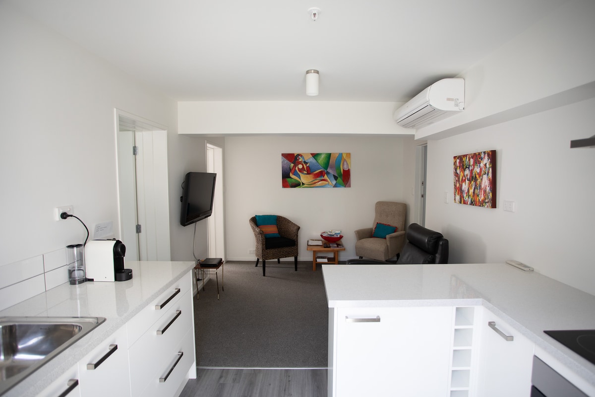 Bine ai venit la Minaret - te vei bucura de o ședere confortabilă și privată în frumoasa Wanaka. Refugiul nostru oferă vedere uimitoare la munte și lac, o grădină frumoasă ca un parc și acces extern privat. Vei dormi liniștit pe patul nostru matrimonial californian confortabil și vei avea toate dotările de care ai nevoie, inclusiv un televizor mare cu ecran plat și o chicinetă cu un cuptor cu microunde, o plită, un prăjitor de pâine, un ceainic și un mini-frigider. La doar câteva minute de mers pe jos până la lac și șine și o mulțime de locuri de parcare pentru o mașină și barcă