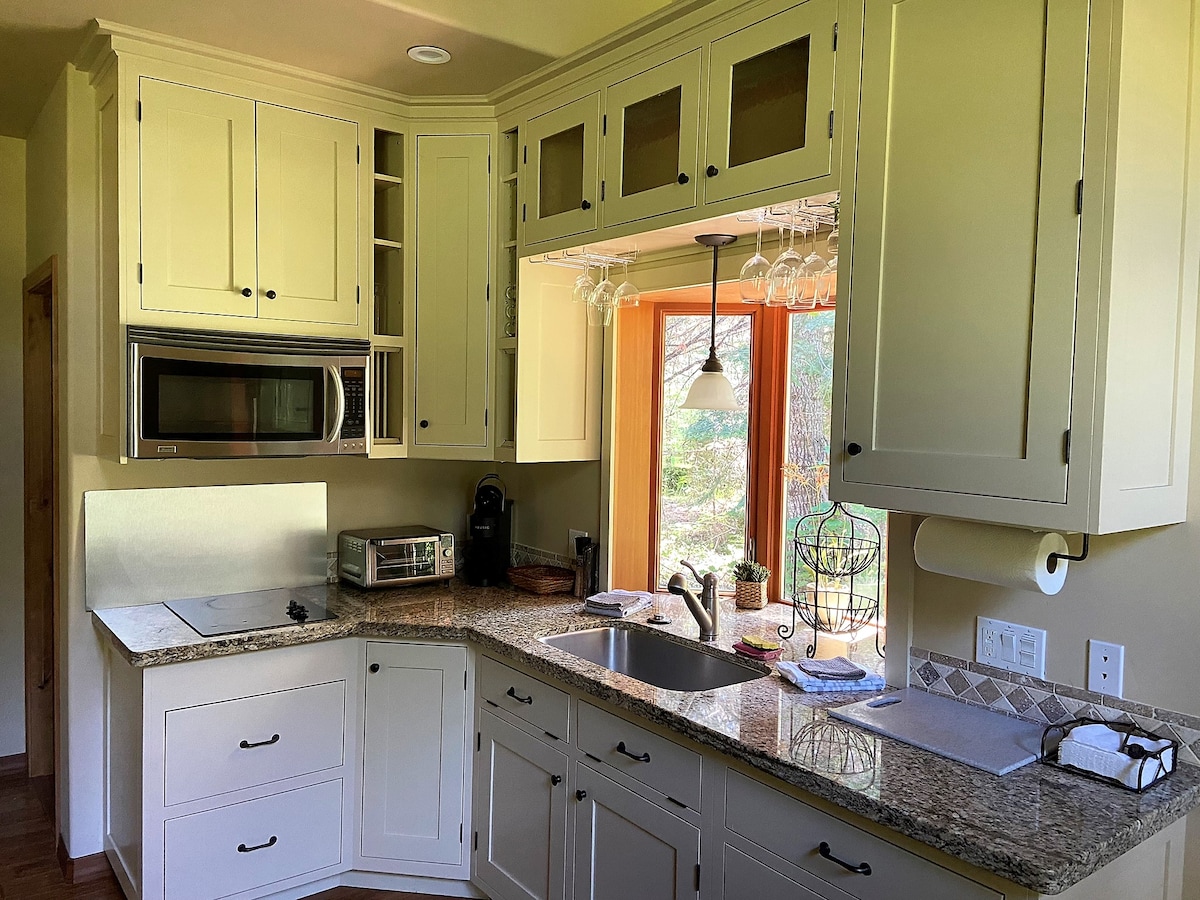 Parterul casei noastre așteaptă vizita ta. Chiar lângă ușa ta se află o cadă cu hidromasaj cu izvoare termale, scaune în aer liber și priveliști extinse cu munții noștri din jur. Bucură-te de liniștea și liniștea țării noastre cu ceașca de cafea de dimineață. La 5 minute de mers cu mașina de magazinele și activitățile bavareze din centrul orașului Leavenworth. Intrare igienizată cu tastatură, fără check-in cu persoana de contact a gazdei.