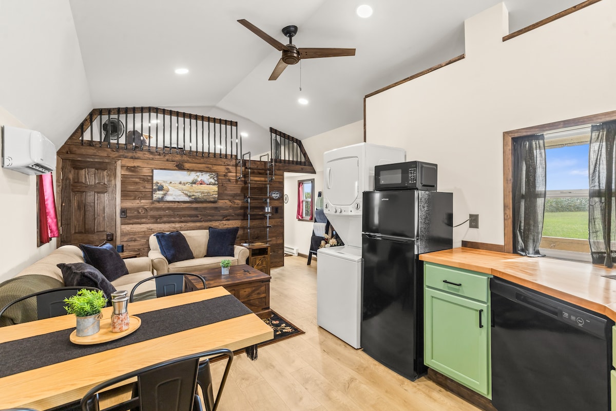 Cathy's Little Farm loft este un apartament de 500 mp într-un hambar de depozitare pe un acru de țară împădurit. Spațiul complet amenajat cu două etaje oferă pace și liniște. Se află aproape de I57, Walmart, Community College, Airport, Fair Grounds, National Guard Training Center, la 15 minute de Olivet, la 60 de mile sud de Chicago. Pat matrimonial și canapea extensibilă dublă la etaj, canapea extensibilă în living. Bucătărie și spălătorie de dimensiuni normale, bine echipate. Gazon mare, grădini și găini de care să te bucuri.