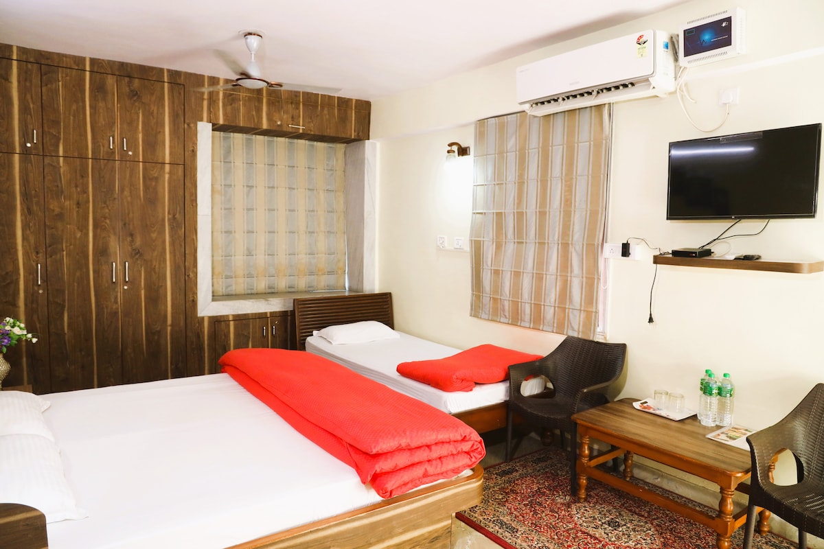 Rezervat exclusiv pentru familii și călători singuri. Nu este disponibil pentru grupuri de prieteni . Te rugăm să nu soliciți rezervarea dacă nu îndeplinești aceste criterii. ★ Locație excelentă - Situat în centrul orașului (lângă AshokNagar pe drumul principal), la doar 8 minute (3 km) de gară și la 15 minute (6 km) de aeroport. ★ Apartament închis cu agent de pază: bucură-te de liniște sufletească non-stop în clădirea noastră cu un paznic dedicat. Include un lift și parcare gratuită pentru o mașină.