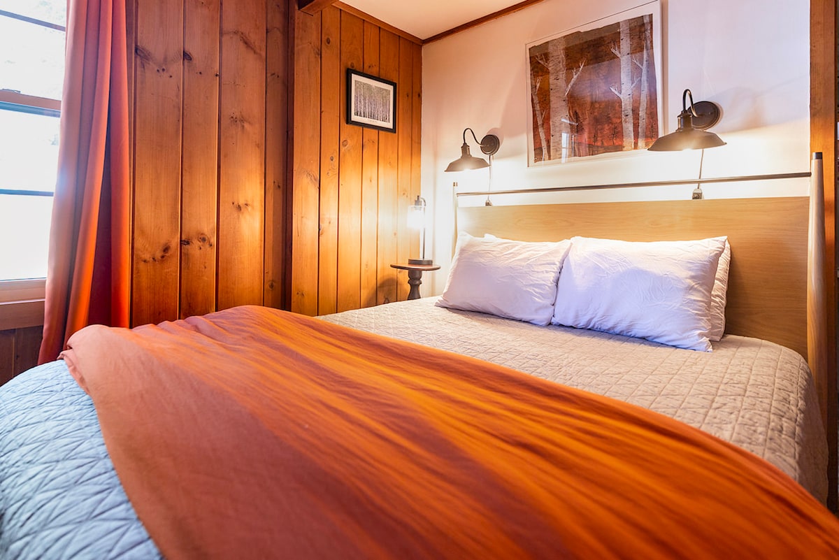 Bine ai venit în împrejurimile noastre împădurite și o casă luminoasă, luminoasă, cu vedere minunată. Ne aflăm pe trasee de schi; x-c și coborâre, trasee de ciclism montan, pârâuri pentru pescuit și Muntele Mansfield pentru drumeții. Poți ajunge pe jos la faimosul restaurant Matterhorn din partea de jos a unității noastre, votat „Cel mai bun bar de schi Apres din America!„ Nu este nevoie să conduci. Avem Wi-Fi, birouri în camere și putem găzdui până la 6 persoane atunci când rezervi celelalte camere ale noastre dacă ești o petrecere mare. Cafeaua și granola sunt furnizate dimineața.