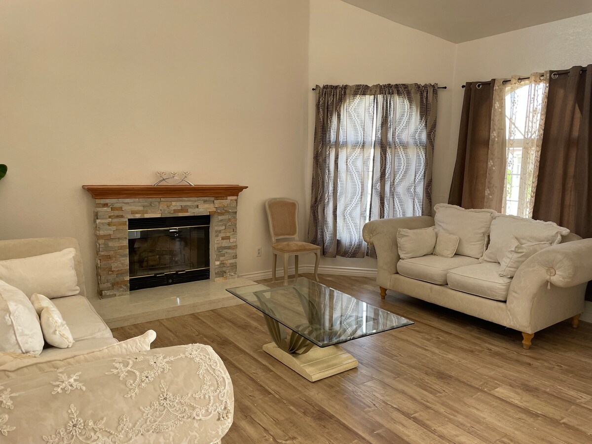Welcome to your "home away from home". Experience comfort and modernity with two sunlit living rooms, and three king-size bedrooms with premium foam mattresses. Cook your favorite dishes in this beautiful kitchen. Best of all, we're only 7 minutes away from the Best of the West softball complex! Located in a chill neighborhood of West Palmdale, we're just a short drive from the Antelope Valley Mall, top restaurants, and shopping spots. Easy access to the 14 Freeway. Book your stay now.