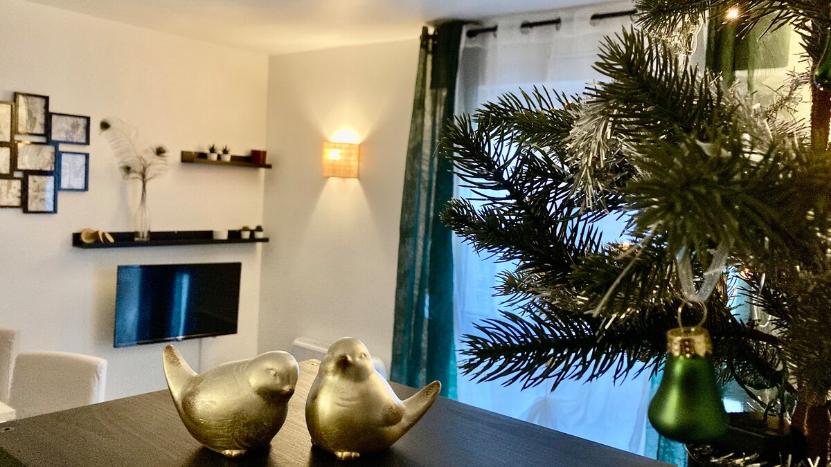 Reședință complet independentă, cu WI-FI de 45 m², cu terasă și intrare privată (acces prin cod digital), pe care ne-am făcut timp să o aranjăm cu atenție pentru a te întâmpina. Situat în centrul orașului, lângă gară și Fundația E Leclerc, te vei putea bucura pe deplin de magazine: brutărie, restaurante, cinema, intersecție...