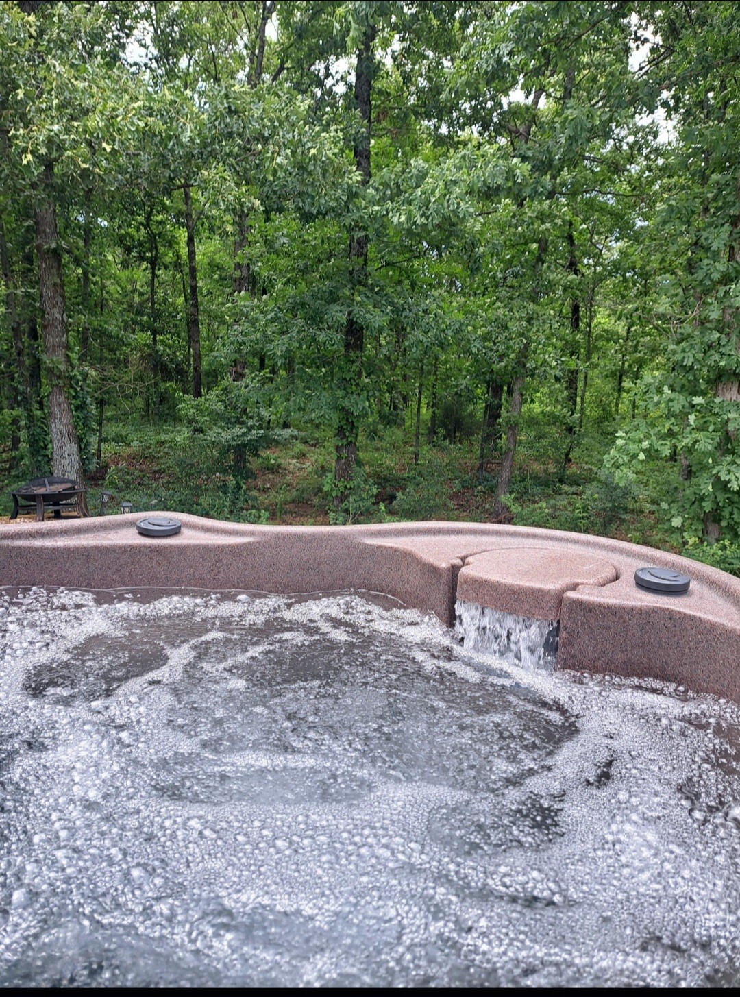 Welcome to our Wilderness Retreat — an Oklahoma Ozark getaway with adventure built right in. At night, the property’s cave transforms into a magical haven , adorned w/soft lights and featuring a table for two. Indulge in the hot tub oasis with aromatherapy, floating candles and warm towels, relax by the fire pit, or walk the scenic trails. We’re 420-friendly, pet-friendly, and perfect for couples who want something unforgettable. Add-ons like roses and chocolate-covered strawberries available