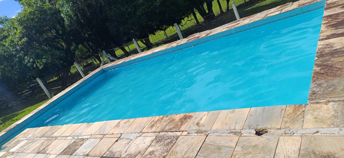 Olá, conheça a Estância Ponta Serrana. Nosso espaço conta um espaço externo, onde temos: - Piscina - Gramado Amplo com rede de Vôlei - Redes para descanso - Cama elástica - Cozinha externa com churrasqueira - Banheiro Além da nossa casa confortável e aconchegante, com: - 03 quartos com 02 camas de casal cada quarto - 01 Banheiro - Cozinha Ampla com churrasqueira - Mesa de Bilhar - TV Venha conhecer.