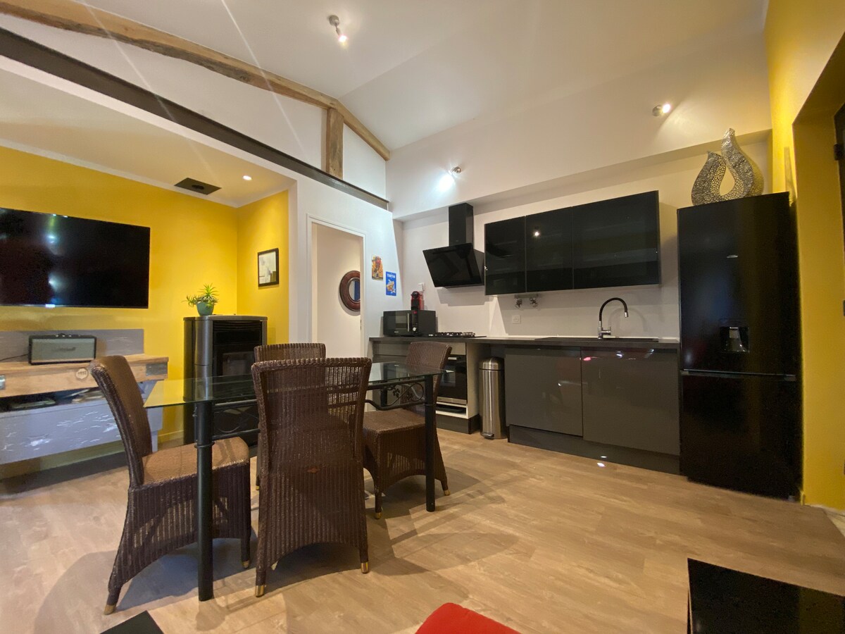 Casă cu terasă în sat, situată în centrul istoric, lângă biserica Saint-Martin (clopotele bat între orele 07:00 și 22:00) și de toate facilitățile. Cazare luminoasă, simplă, primitoare și confortabilă. Parter: living-sufragerie, bucătărie, baie cu toaletă. La etaj: 1 dormitor cu pat de 140 cm și dressing; 1 dormitor cu un pat de 160 cm și baie proprie cu toaletă. Prosoapele sunt asigurate; paturile sunt proaspăt făcute pentru confortul tău. WI-FI GRATUIT.