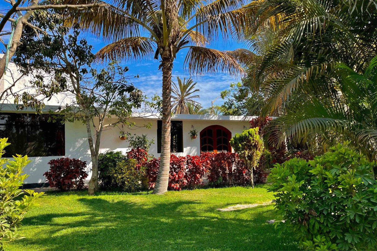 Casă frumoasă la țară privată, întreagă care are spații spațioase și confortabile într-o zonă liniștită și înconjurată de natură. Suntem prietenoși cu animalele de companie și avem parcare gratuită. LOCAȚIE - Ne aflăm în apropiere de CHAN CHAN, la: - 7 Km de centrul spa Huanchaco (10 minute de mers cu mașina) - 4 km de Aeroportul Carlos Martínez de Pinillos (7 minute cu mașina). - 6 km de centrul orașului Trujillo(9 minute cu mașina). Casa este exclusiv pentru oaspeți și nu este împărțită cu alte persoane.