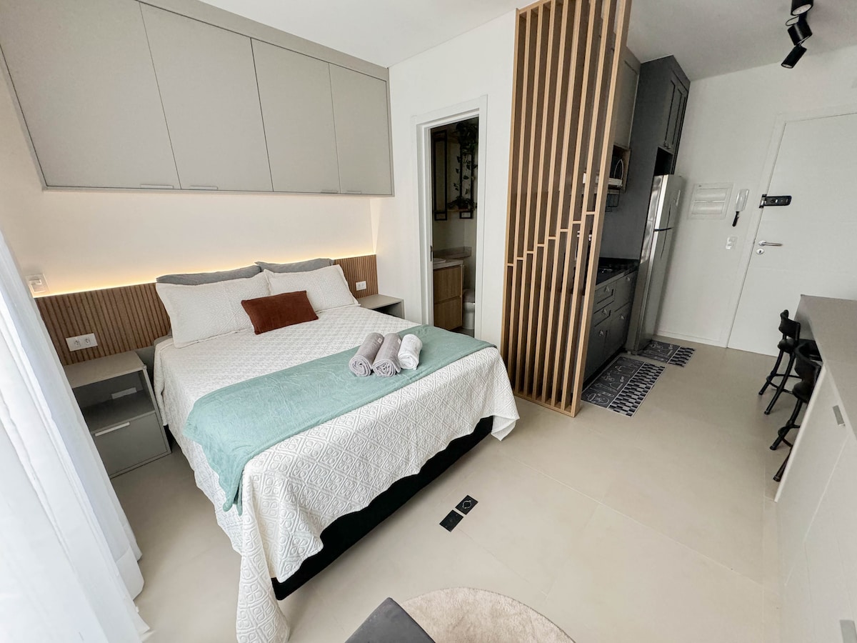 Garsonieră modernă, în centrul civic — ideală pentru cei care caută confort, caracter practic și o locație excelentă în Ctba. Mediu cu aer condiționat, bucătărie utilată și Smart TV — perfect pentru agrement sau muncă. 🛏️ Poate găzdui confortabil până la 4 persoane, lenjerie de pat de calitate. • Piscină încălzită • Sală de fitness • Saună • Terasă • Spălătorie (plătită) 🚗 Parcare disponibilă în clădire, 35 R$ pe noapte Plată prin PIX către gazdă.