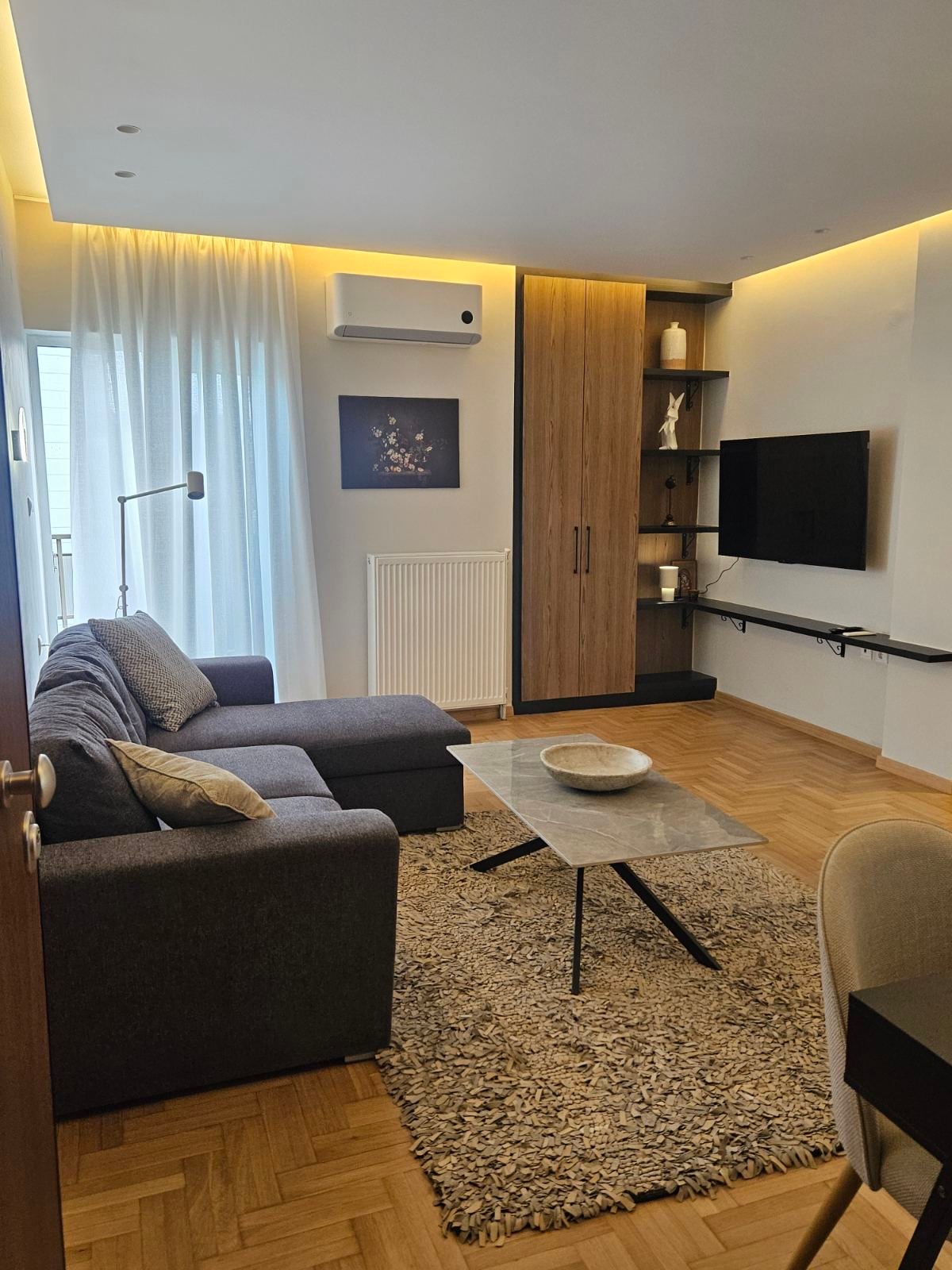 Stylish, newly renovated apartment in the heart of Larisa. Features 1 bedroom with a queen-size bed, a sofa bed, luxury bathroom, and a fully equipped kitchen. Located on the 5th floor with a very large balcony, high-speed internet up to 100 Mbps, and tasteful, modern décor. Ideal for a comfortable and quality stay in the city.