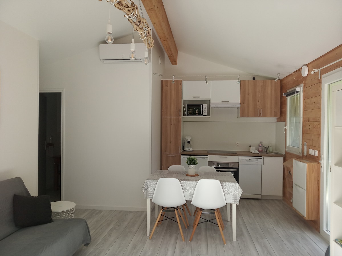 O căsuță în inima orașului Gascony. Fără trepte, cu aer condiționat, echipat și confortabil, pentru până la 4 persoane, inclusiv o cameră principală cu o canapea extensibilă pentru 2 persoane, o zonă de bucătărie complet utilată și mobilată, baie cu duș mare, dormitor cu pat dublu 140x200, cearșafuri și prosoape furnizate și o cămară cu mașină de spălat. Această cazare este individuală și independentă, cu o terasă privată în aer liber și dotată cu mobilier de grădină. Parcare privată și securizată