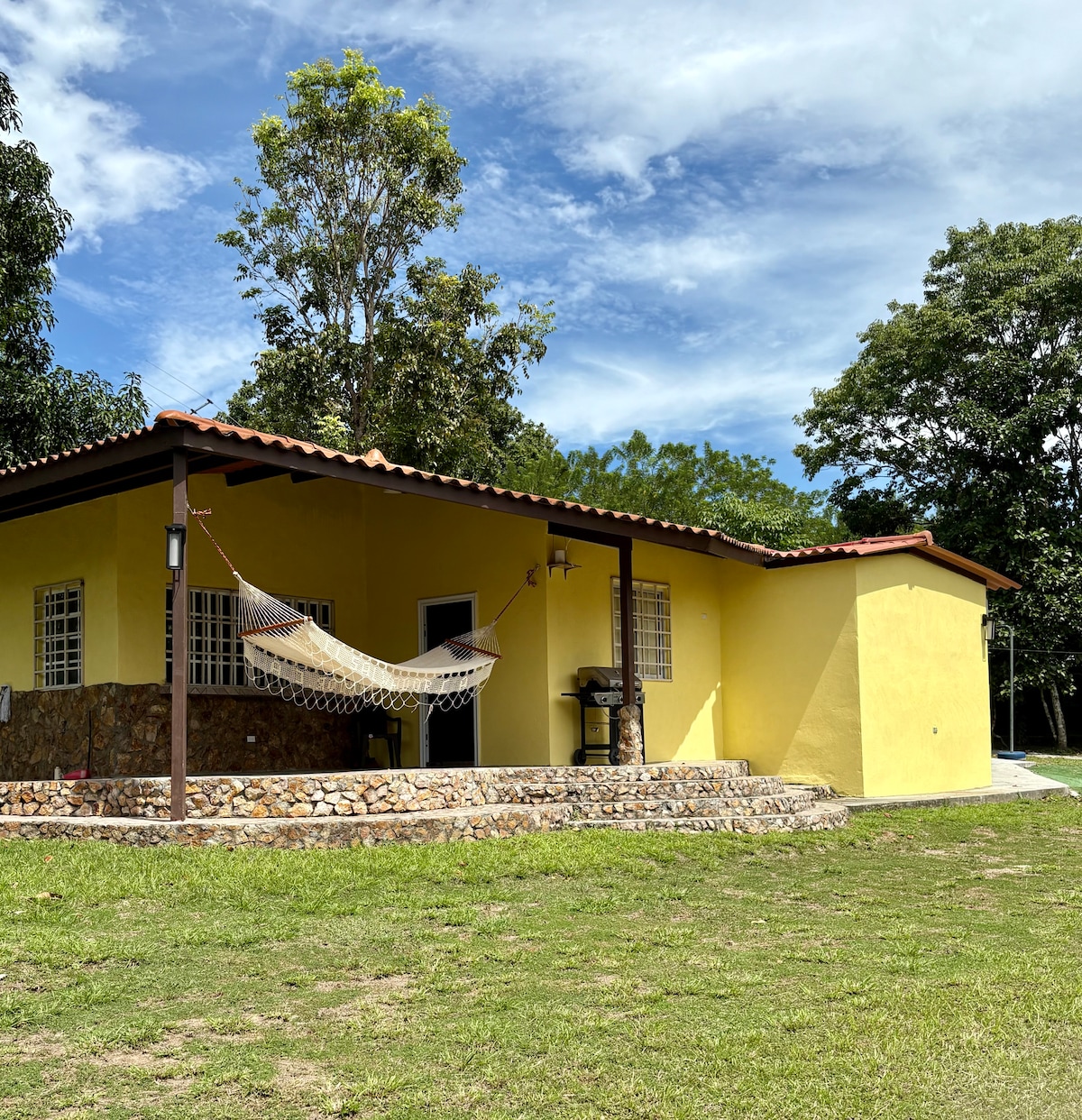 Hospédate en esta casa de campo ubicada a 30 minutos de la carretera panamericana y con vistas a las montañas de Panamá Oeste y Coclé. Esta casa tiene piscina, área social, cancha de fútbol y estacionamientos privados. Tiene capacidad para 10 huéspedes y cuenta con los servicios básicos, cocina bien equipada y asados a gas, además de WiFi, TV y aires acondicionados en las habitaciones. Se ubica pocos minutos de senderos en las montañas de Panamá Oeste y playas del Pacífico Panameño.