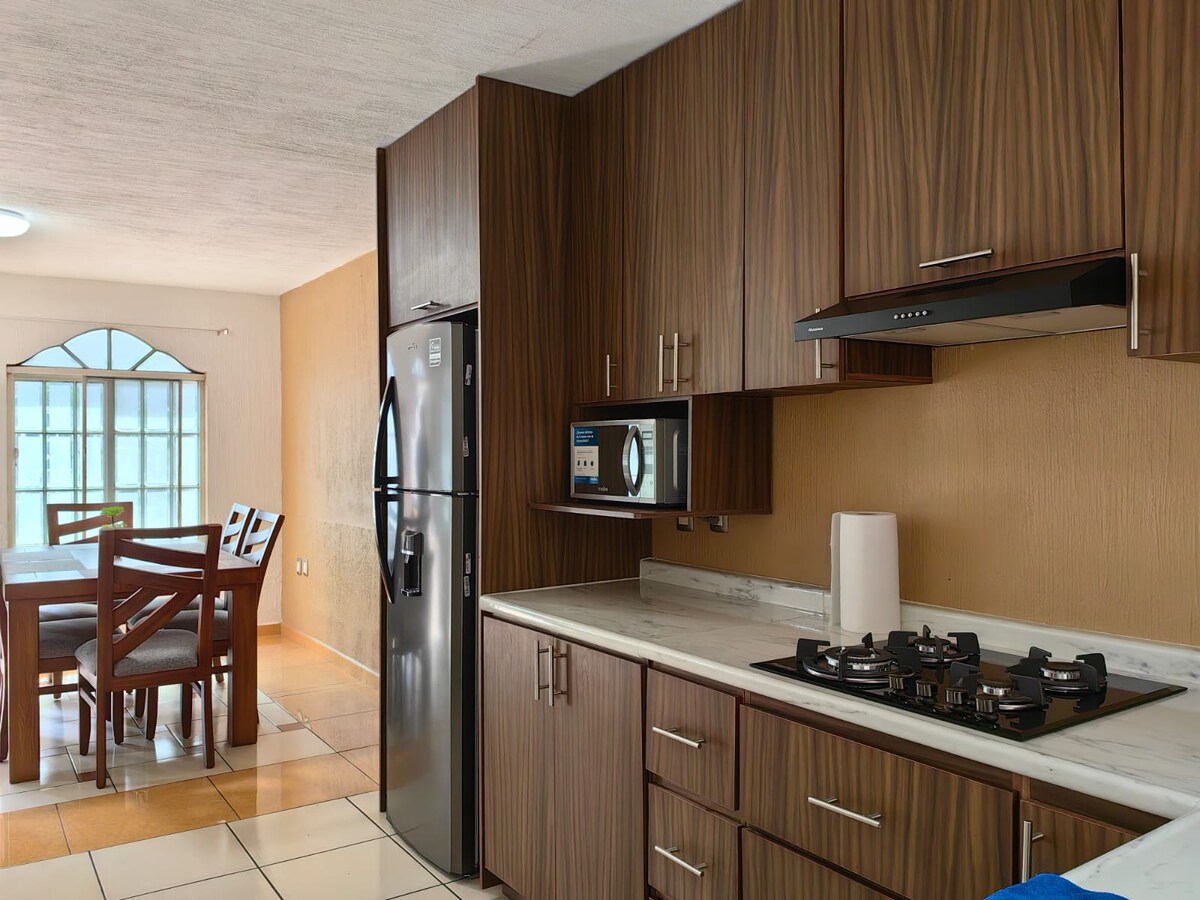 Descansa en un lugar tranquilo y cómodo.Con una excelente ubicación a 15 minutos del aeropuerto, este hermoso departamento te ofrece una experiencia agradable.Equipado con aire acondicionado, frío-caliente, lavadora,secadora de ropa, secadora para el cabello, refrigerador, agua caliente, plancha, estufa con horno, horno de microondas, la cocina cuenta con lo necesario para cocinar tus platillos favoritos.Ubicado en un lugar céntrico y de fácil acceso. rutas de camiones cerca.Aceptamos mascotas.