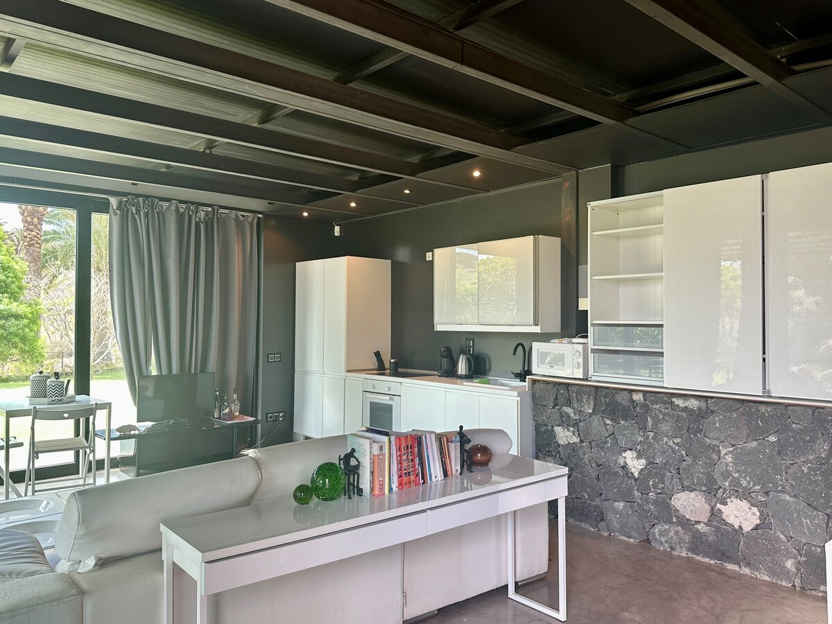 Coop-ul de pui a fost aici. Dar nu a mai rămas nimic de văzut. Pereții de stâncă creează un microclimat plăcut, iar ferestrele mari lasă să intre multă lumină și, de asemenea, au vedere la pantă. Te poți relaxa pe terasă și, după o zi plină de evenimente, dușul de ploaie te așteaptă în oaza de wellness. „Cipul” poate fi schimbat rapid și cu mașina. La 15 minute de plajă, la 25 de minute de Las Palmas și la 30 de minute de sud.
