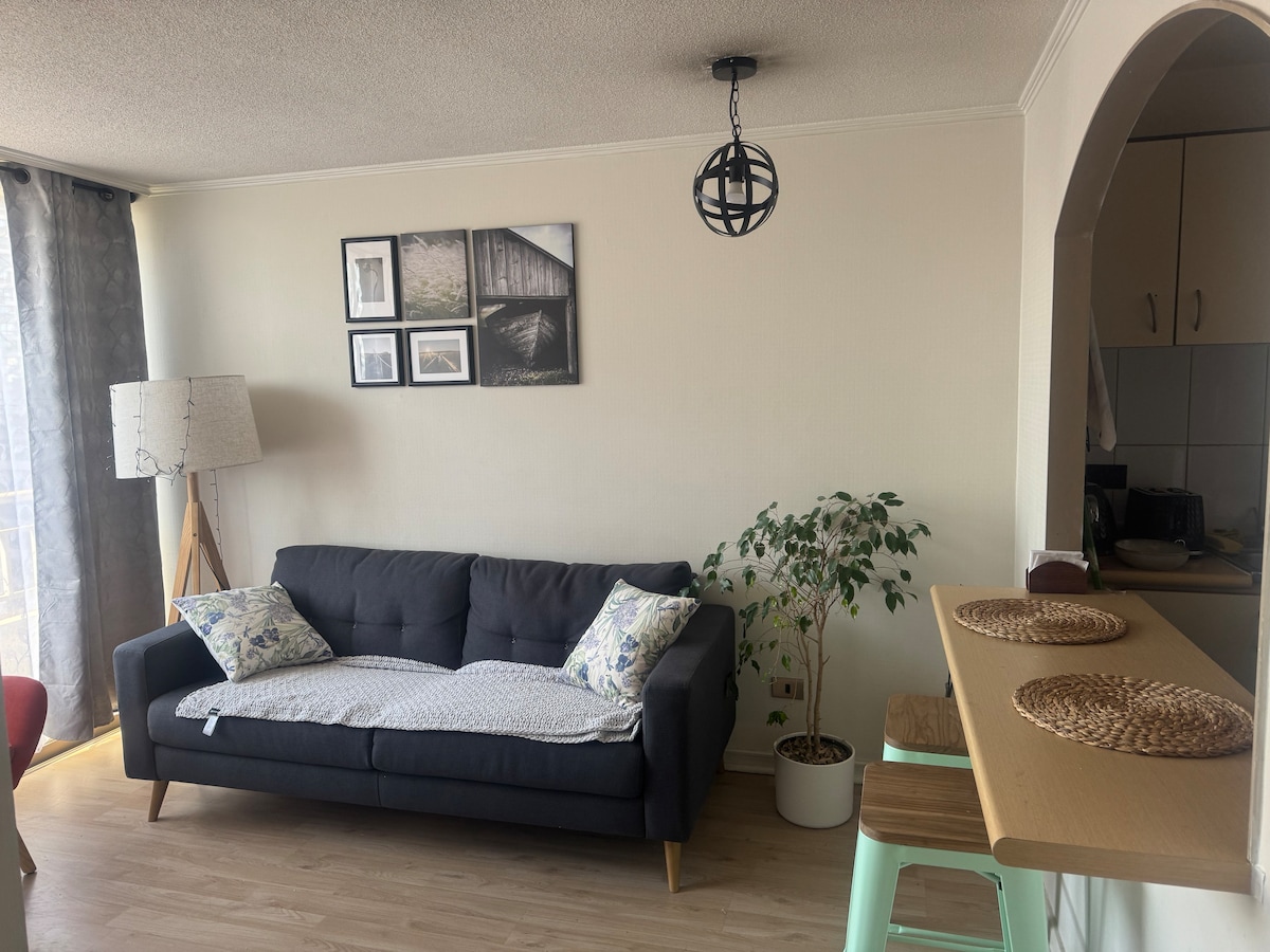 Home studio de 30m2 app. Junto a Metro Santa Lucía (línea 1) variedad de locales y zona turística muy cercana caminando. Mucho comercio a la salida del edificio en su mayoría grupos familiares establecidos hace mas de 10 años. Tiene: smartTV Netflix, YouTube premium, Wifi. El baño: toalla, jabón, secador de cabello, pasta dental, plancha de ropa Cocina : microondas, sartén , olla, cubiertos, platos y vasos para dos. Café , azúcar , sal, horno y frigobar, mini wafflera y sándwichera