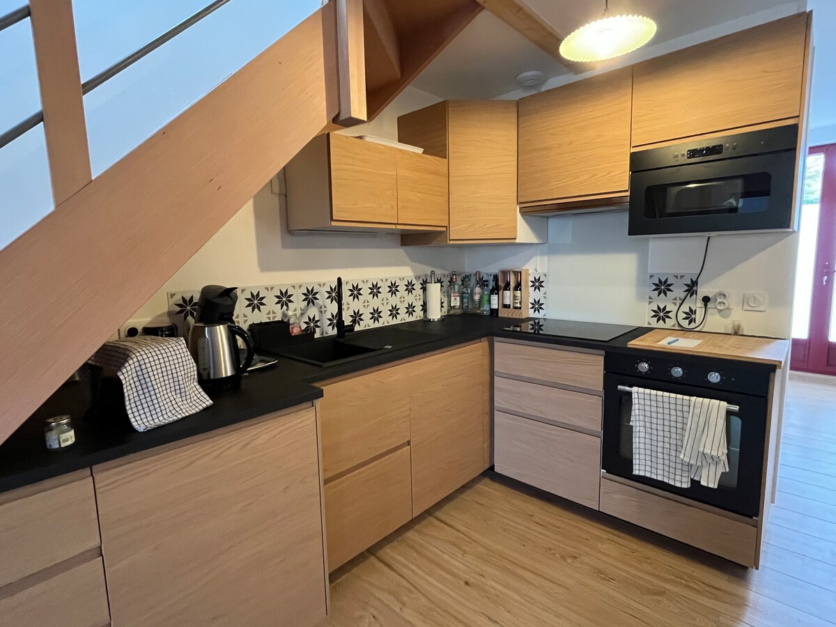 Bucură-te de o locuință fermecătoare și elegantă, complet renovată. Este situată la primul etaj (fără lift) al unei case mari din centrul orașului Latresne, aproape de magazine. Apartamentul este format dintr-un living frumos, cu bucătărie deschisă utilată, un dormitor confortabil și o baie cu duș mare. Te vei simți ca acasă. Un pat cu umbrelă poate fi instalat, iar canapeaua din living poate fi transformată într-un pat pentru 2 persoane.