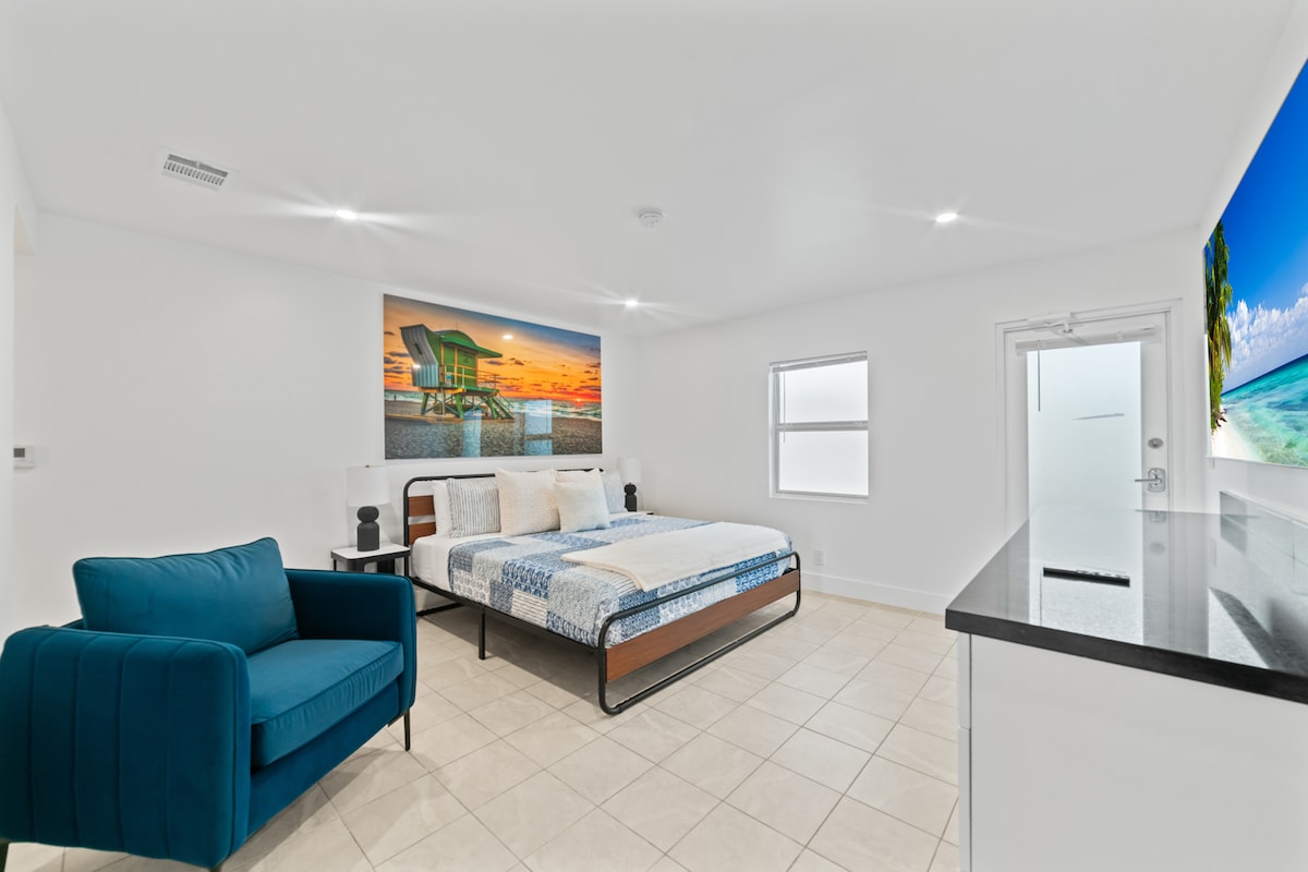 Proprietatea nr. 1 din lista de dorințe Airbnb din Broward! Apartamentul nostru confortabil de tip garsonieră oferă o bucătărie complet utilată, baie și o mulțime de dotări suplimentare! Intrări private în față și în spate. Zona piscinei tropicale (comună) cu senzație de stațiune chiar la ușa din spate. Aproape de plaje, aeroport, port etc. Se potrivește 2 cu pat matrimonial confortabil. Mergi pe jos la restaurante grozave și grătar disponibil pentru 5 USD. Super-gazde cu experiență la fața locului, cu peste 11 ani de experiență și peste 2800 de recenzii. Vino alături de noi în complexul nostru Airbnb! Studioul este în partea dreaptă a fotografiei aeriene.