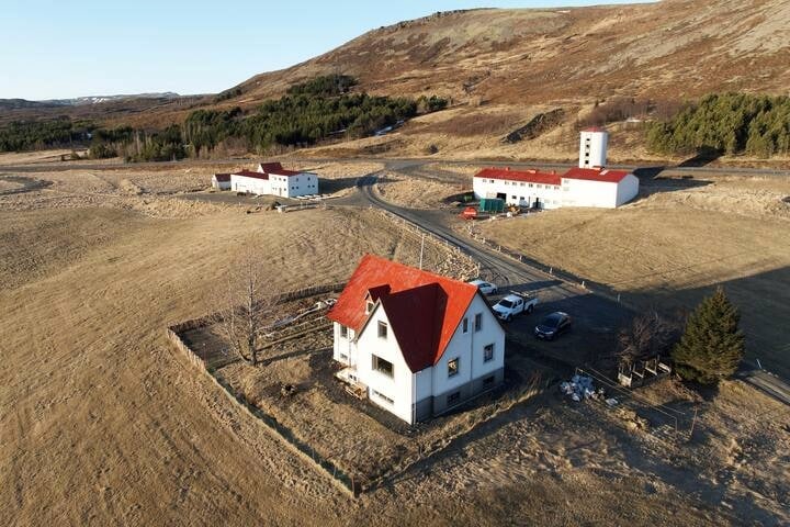 Ferma este așezată în cel mai frumos peisaj pe care ți-l poți imagina. Munți puternici de jur împrejur, sunet de râu proaspăt de somon, cascadă în canionul care îți taie respirația. Aurora Borealis de la fereastra ta, atunci când condițiile sunt corecte. Excelent pentru o evadare. Relaxează-te sau fii creativ. Drumeții atente în natura neatinsă și bucurați-vă de viața la fermă. În mijlocul pustietății și totuși este la numai 22 km de centrul orașului Reykjavik. Multe puncte de interes sunt la mică distanță, cum ar fi Cercul de Aur, 2 minute.