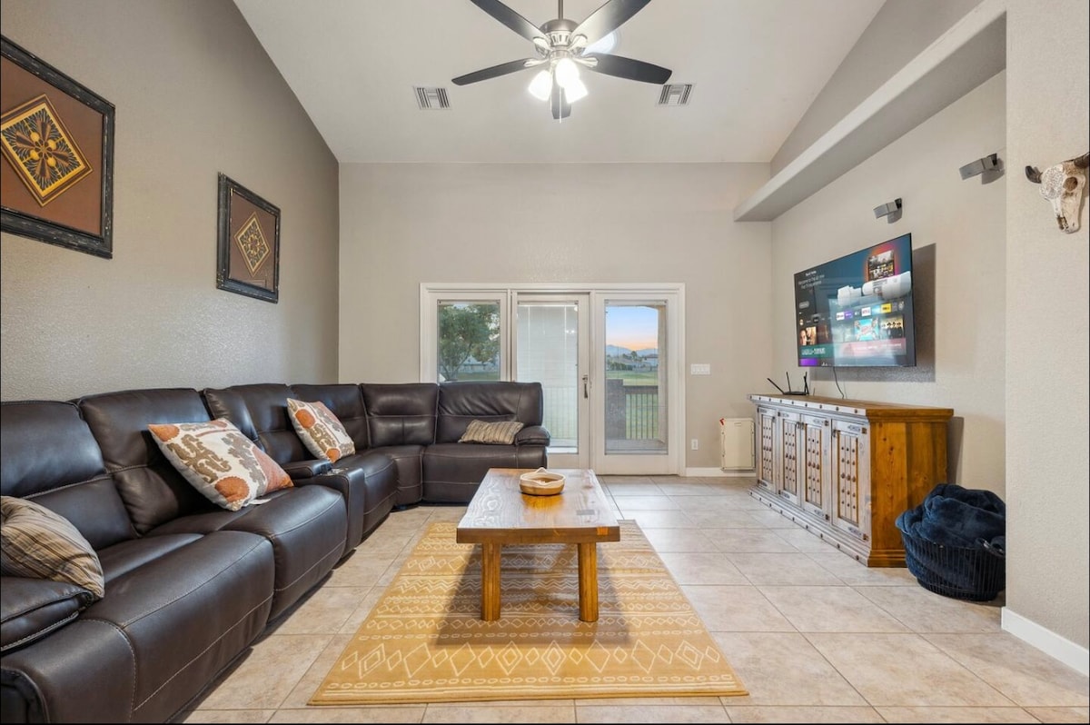 Fort Mohave la superlativ! Amplasată pe un teren de golf, casa noastră este chintesența casei de vacanță pentru a-ți aduce familia pentru a avea o ședere relaxantă și memorabilă. Indiferent dacă îți petreci ziua pe râu sau te relaxezi la piscină, casa noastră din Fort Mohave este locul unde te poți relaxa la sfârșitul zilei. Ne place să ne aducem copiii aici cât de des putem și a fost locul nostru să ne detașăm și să ne reconectăm. Sperăm ca ție și familiei tale să vă placă locuința la fel de mult ca nouă!