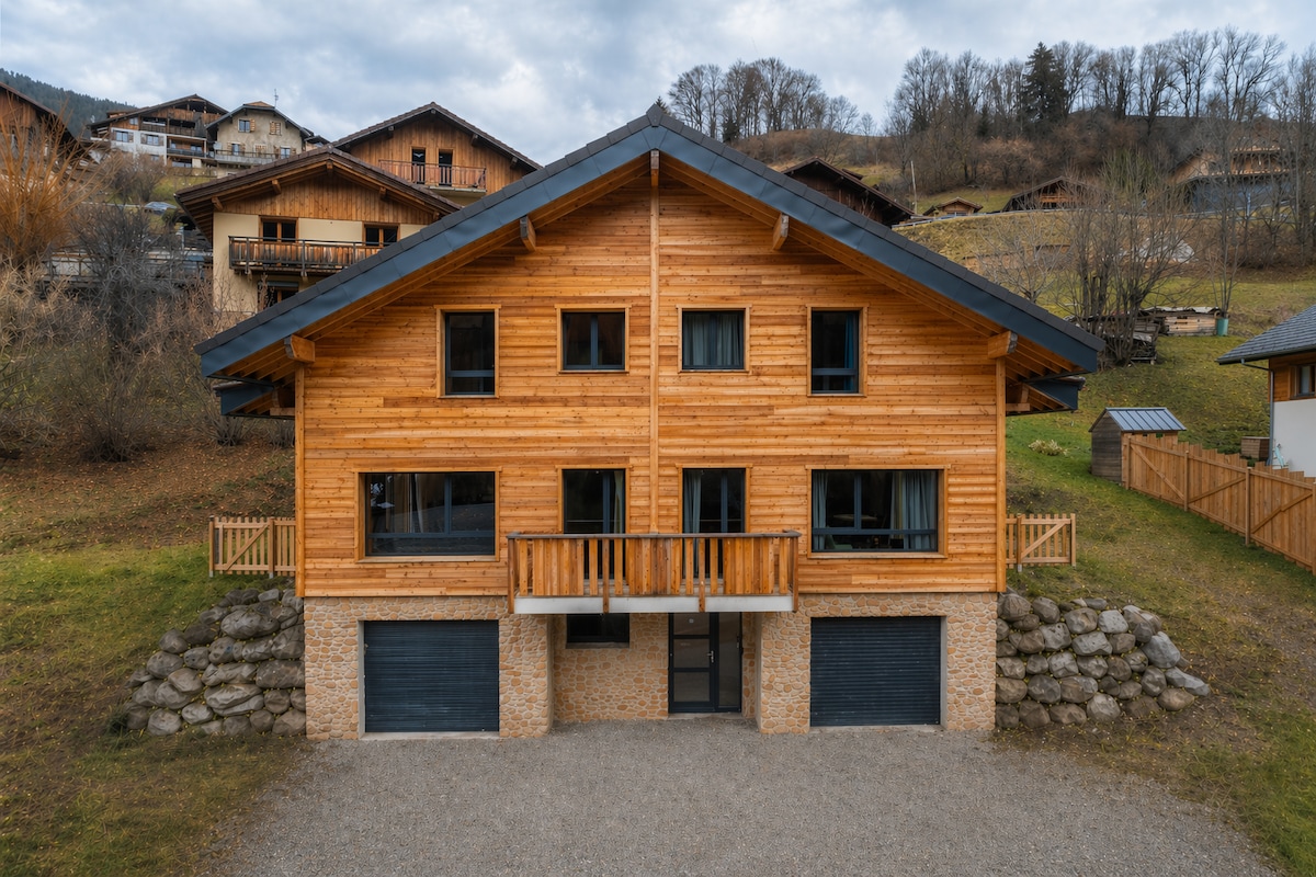 Bel appartement neuf en rez-de chalet, plein Sud au calme et en lisière de forêt. Jacuzzi PRIVATIF 💦 Le chalet est situé à 5 km des stations de ski de La Clusaz et du Grand-Bornand, à 20 km d'Annecy, à 50 km de Genève et à 80 km de Chamonix. Au pied du massif des Aravis, profitez de nombreuses activités : ski, randonnée raquettes, balade chiens de traîneaux, luge, piscine, Spa, parapente, VTT, baignade au lac d'Annecy (bateau, wakesurf, paddle, canoë...), visite d'Annecy, Genève ou Chamonix.