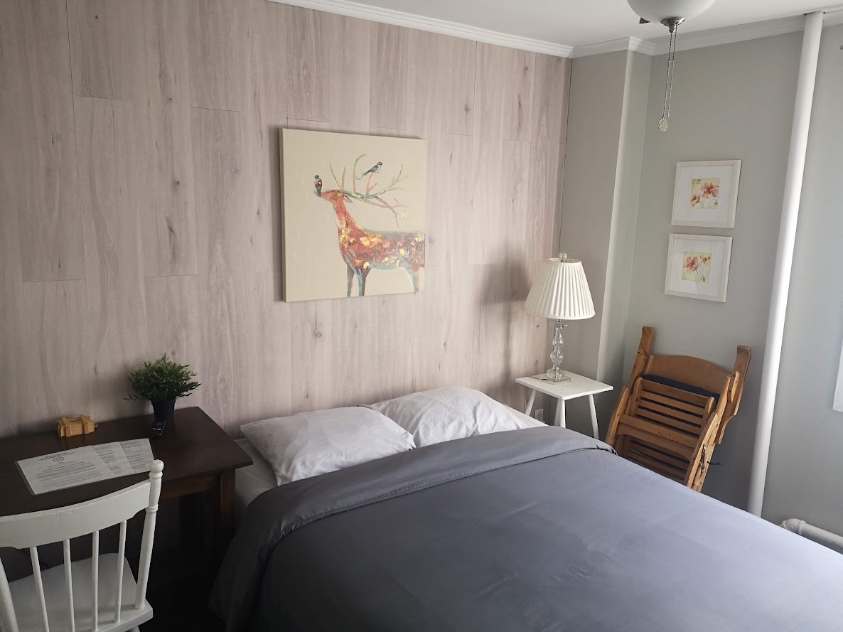 Chambre familiale confortable et chaleureuse comportant 1 lit double et 2 lits simples avec salle de bain privée. Vue sur le jardin et en partie sur le fjord, dans l'auberge Rose des Vents. Située dans le village pittoresque de Sainte-Rose-du-Nord, l’Auberge vous propose de l’hébergement, un restaurant mettant à l’honneur les producteurs locaux, un café bar, des activités de plein air et vous présente une scène culturelle variée. Tout ça au même endroit!