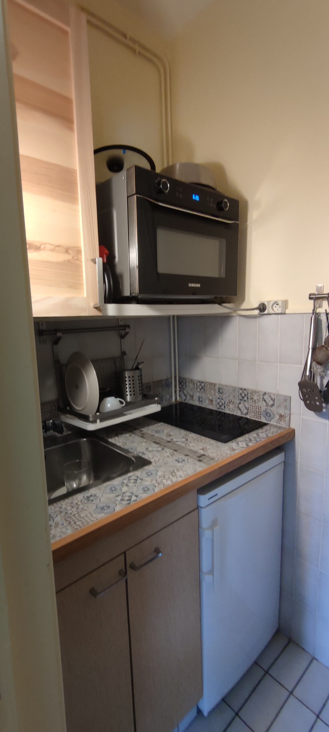 Bright flat 28m2 with balcony in a quiet residence with private parking space. Beach, restaurants, shops and station at 600 m. 1 Bedroom with a bed 140x190cm - In the living room, a sofa bed with mattress 140x190cm Comfortable bedding with pillows, duvets and blankets. Sheets and towels not provided, possibility to rent them (15€ for 2 persons kit) Fully equipped kitchen: Nespresso coffee machine, filter, kettle, toaster, hob, mini-oven and microwave.