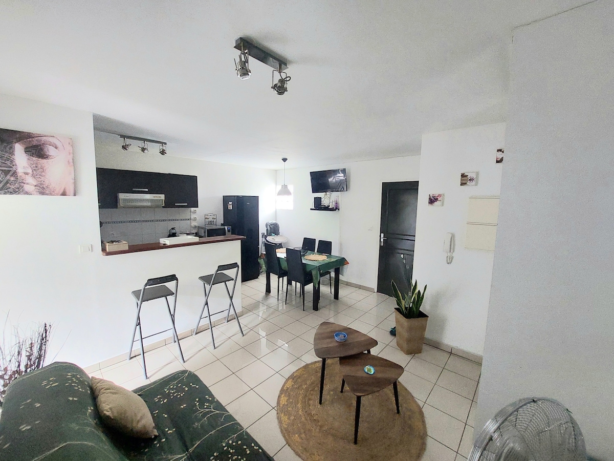 Bine ai venit la zot! ☀️ Vino și petrece-ți cea mai bună ședere în acest apartament într-o reședință privată și sigură. Situat în inima orașului Saint-Pierre, vei fi aproape de toate facilitățile și activitățile: piața de târguri 🧺 este la 15 minute distanță, iar plaja este 🏖️ la 10 minute de mers pe jos. Acest loc este baza perfectă pentru explorarea sudului sălbatic: vulcanul 🌋 și cascada Grand Galet 🏞️ se află la o oră de mers cu mașina, iar Cilaos Circus ⛰️ se află la 1,5 ore distanță cu mașina.