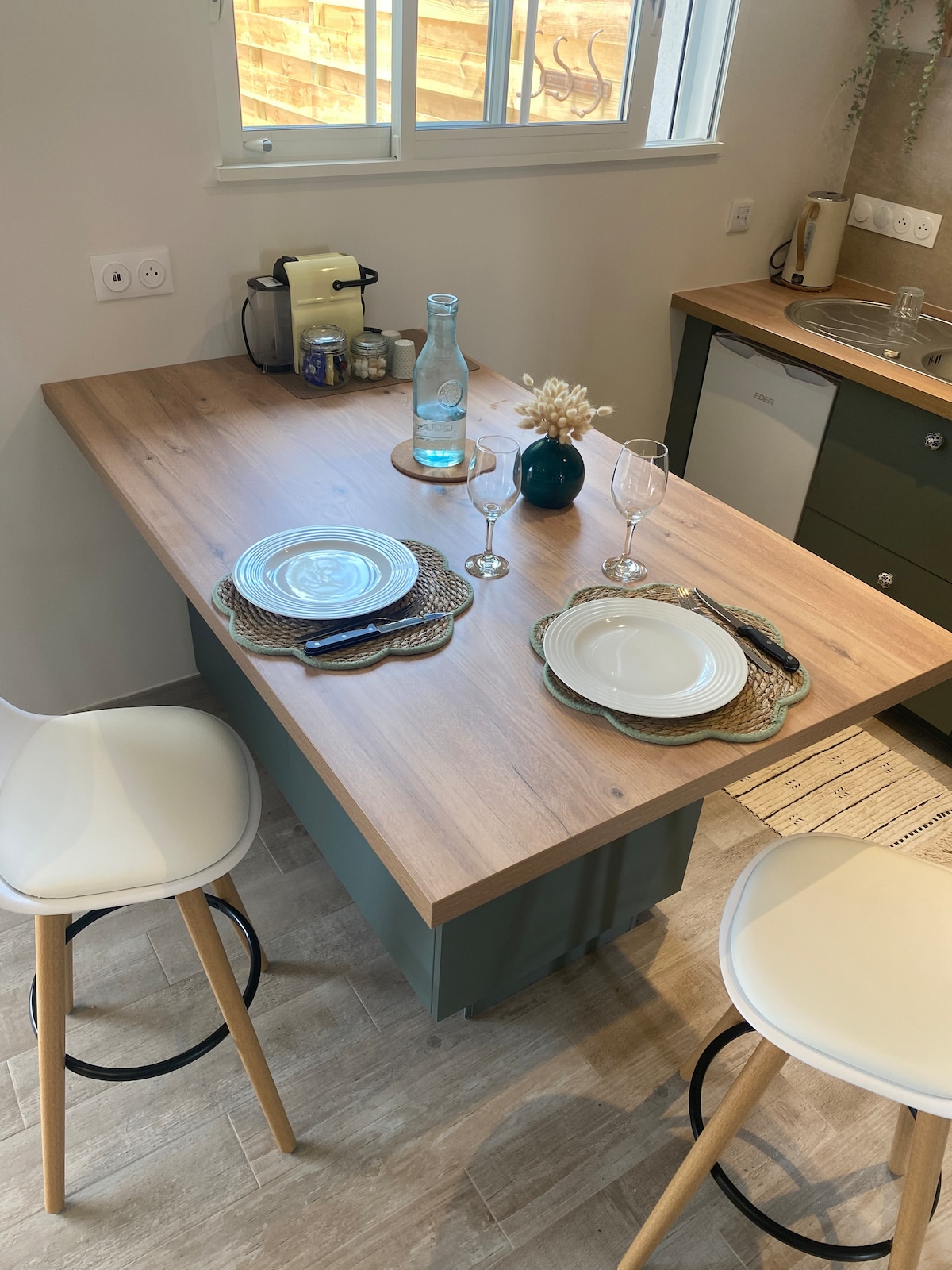 Această proprietate de familie are o vedere extraordinară asupra Bazinului Arcachon, locația sa dominantă oferă cabinei dvs. un sentiment de exclusivitate și bunăstare. Pădurea de pini pe de o parte, bazinul în ritmul mareelor pe de altă parte, aici este un cadru ideal pentru a reîncărca bateriile cât mai aproape de natură. Atenție ! Vă rugăm să rețineți că nu există bucătărie, ci doar un cuptor cu microunde, un minibar și o mașină Nespresso. Vasele sunt la dispoziția ta.