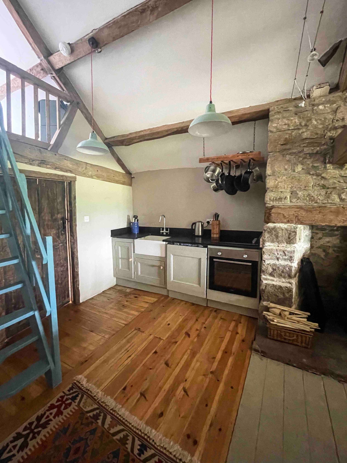 Bine ai venit la Grajduri și Hayloft, cu vedere la grădinile și iazul Hop Kilns și la frumoasa zonă rurală din Herefordshire. Unitatea de cazare în sistem self-catering este formată dintr-un dormitor (super king size) și o baie spațioasă de lux, un plan deschis, bucătărie complet utilată, zonă de luat masa și living cu uși duble care se deschid spre balconul orientat spre sud, cu vedere rurală. Netflix, wifi, parcare cu încărcare EV. Ne pare rău, fără animale de companie, nu se fumează nicăieri în locuință, nu se acceptă vizitatori sau oaspeți suplimentari.
