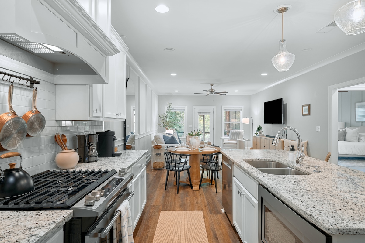 Evadează în Auburn și stai în apartamentul nostru recent renovat, de la parter, 4BR/4BA. Fără scări sau bătăi de cap, doar o casă spațioasă și complet echipată departe de casă. Poziția noastră convenabilă în apropiere de AU Performing Arts Center, muzeu, stadion și restaurante facilitează explorarea orașului. Planul deschis al etajului și dormitoarele spațioase au fiecare baie privată, oferind mult spațiu pentru grupul tău. Dormi pe saltele noi din spumă cu nectar și memorie pentru un confort suplimentar și o odihnă de pluș!