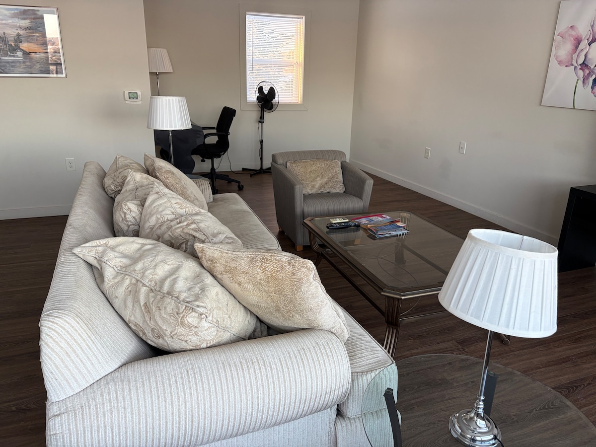 Situat central. West End Prescott. Acest apartament privat de la etajul 3 cu 2 dormitoare, 1 baie deasupra casei noastre de secol, este liniștit și spațios. Minute până la Riverwalk, Kelly's Beach, centrul orașului Prescott și parcul de scufundări. Vedere frumoasă la 180 de metri de copac a râului St. Lawrence și a zonei înconjurătoare din punctul focal: ferestrele „The Look-Out”. Proaspăt vopsit și renovat cu o nouă regină în pat principal și dublu în al doilea bdrm. Bucătărie echipată (fără dw), sufragerie cu 4 locuri, bârlog cu televizor inteligent de 40'. Te rugăm să consulți fotografiile.