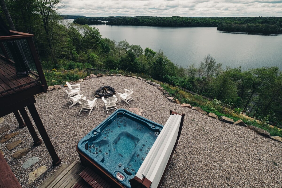 Adu întreaga familie la această casă mare de bușteni de pe malul apei, situată pe lacul Mississippi. Există o mulțime de spațiu pentru toată lumea, cu cinci dormitoare, birou separat, birou separat, cameră mare spațioasă cu șemineu din piatră, cadă cu hidromasaj în aer liber. Această proprietate de 100 de acri are acces la trasee pietonale, 8 acri de spațiu verde tuns, 500 ft de țărm nisipos complet cu un doc privat pentru a vă bucura cu adevărat de aer liber. Relaxează-te fiind înconjurat de natură și bucură-te de focuri de tabără în timp ce privești stelele.