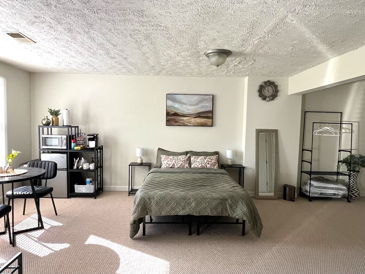 Această cameră fermecătoare și confortabilă este concepută cu grijă pentru confort și relaxare. Camera are intrare privată și are un pat matrimonial confortabil de pluș, chicinetă și baie completă. Bucură-te de atmosfera caldă și primitoare, cu iluminare ușoară și accente selecționate, care te fac să te simți ca acasă. Ideal pentru călătorii singuri sau cupluri, acest spațiu se află într-un cartier liniștit, aproape de atracțiile locale, restaurante, Wi-Fi, parcare gratuită și cafea/ ceai gratuit.