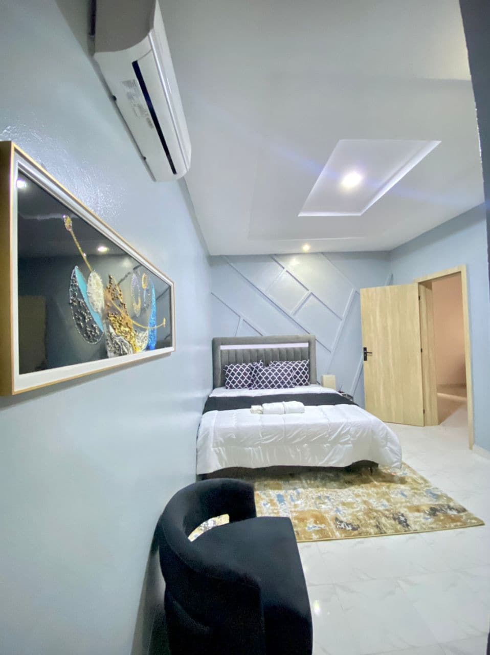 Amplasate în uimitoarea Royal Pine Estate, Lekki. Locuințele noastre de lux cu 4 dormitoare nu sunt doar un loc de cazare, ci o experiență. Imaginează-ți acest lucru: un living spațios unde te poți relaxa, un dormitor matrimonial cu dressing și camere care sunt toate dotate cu baie proprie. Avem Wi-Fi și televizoare inteligente nelimitate în fiecare cameră. Bucură-te de sala noastră de gimnastică, snooker și facilități de tenis de masă! Iar când este timpul să gătești, bucătăria noastră complet echipată are tot ce ai nevoie - gândește-te la mașina de spălat și chiar un PS5 pentru divertisment!