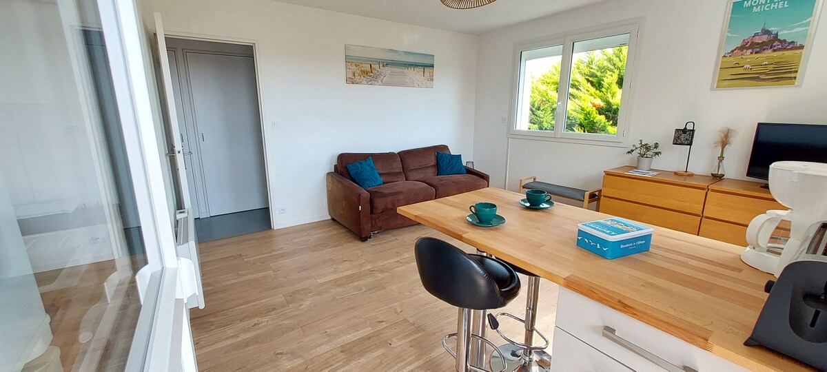 🏠 🌊 Cazare cocoon, curată și independentă, liniștită, la nivelul grădinii casei noastre cu exterior mic închis, pe înălțimile Saint Pair, la 400 m de mare și la 500 m de toate magazinele (pește modern, florărie superbă, bar de tapas, bar de tutun, restaurante, brutării, măcelării...), cazinou, biserică, supermarket, loc de joacă, skatepark...